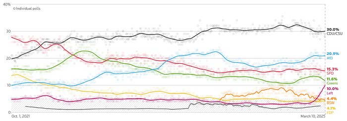 When we take a look at Germany’s situation, AfD (Alternative for Germany) has been rising since the party was established. AfD shows that the party is going with a populist right-wing direction. Polls show that, since the administration from SDP (Social Democratic Party of Germany) to CDU/CSU (Christian Democratic Union coalition), AfD has doubled their votes, passing the last government of Olaf Scholz’s popularity and votes.
